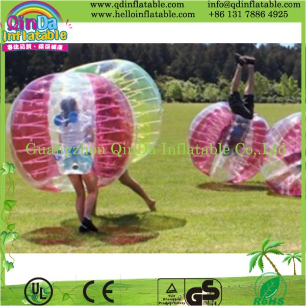 Bumper Ball is also called Body Zorb, Body Zorb Ball, Body Bumper Ball, Inflatable Bumper Ball, etc. It is the newest activity for 2013, Bumper ball is physical, exhilarating, and enormous fun for children and adults. Users can strap on the Bumper Ball and 'bump' into each other, much like a Sumo Wrestler game. Bumper Ball competitors can run into each other, roll on the ground, and even jump on each other using the Bumper Ball inflatable. It is suitable for family backyard, playing center, etc.